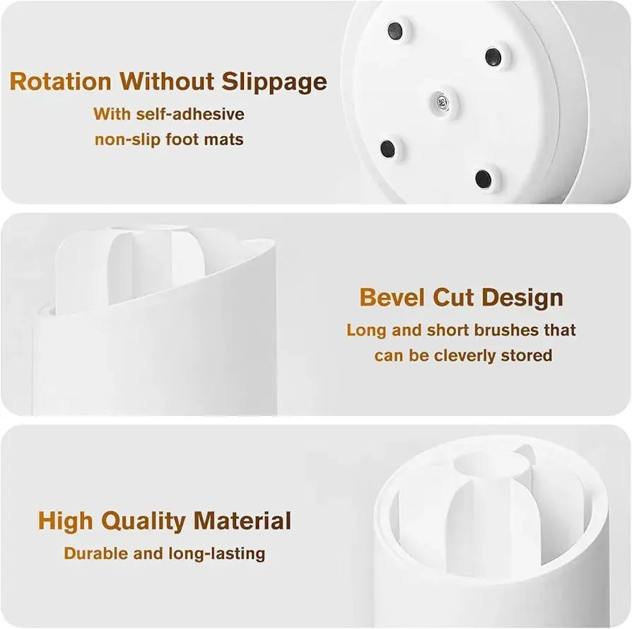 - 360-Degree Rotation: Our organizer spins smoothly, allowing you to easily find and select the perfect brush for your makeup routine. Effortlessly access every brush without the hassle of rummaging through a cluttered drawer.