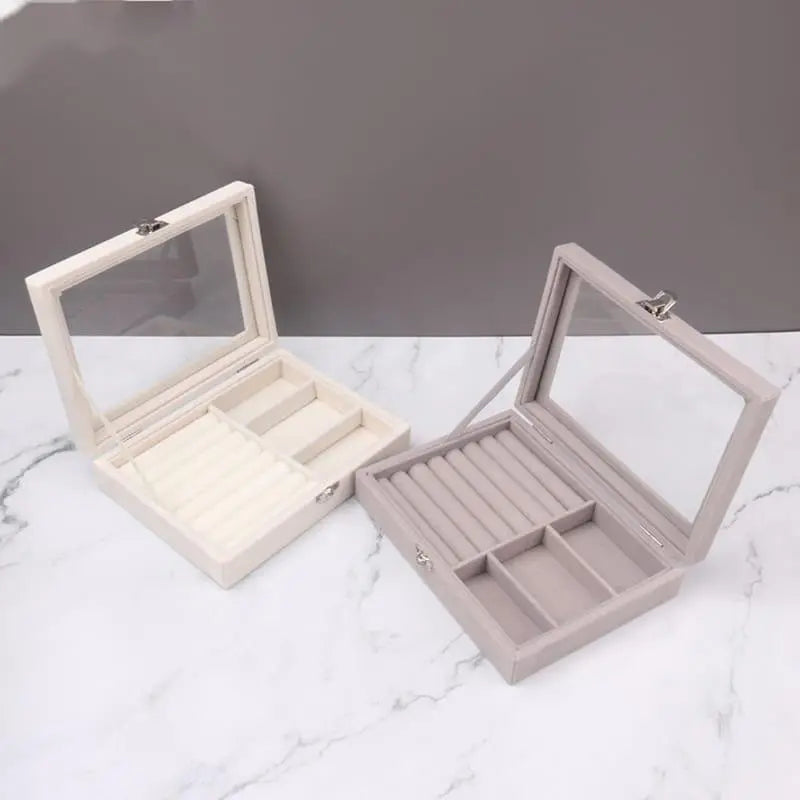 Elevate your jewelry organization with the Mistico Velvet Jewelry Box – a luxurious, multi-functional storage solution designed for elegance and practicality. Crafted from premium velvet with a transparent glass lid, this velvet ring box for wedding and everyday use offers a clear view of your cherished accessories while keeping them dust-free and securely in place.